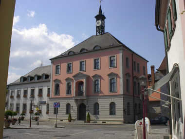 | Rathaus in der Hauptstraße | Die Stadthalle am Volksfestplatz |